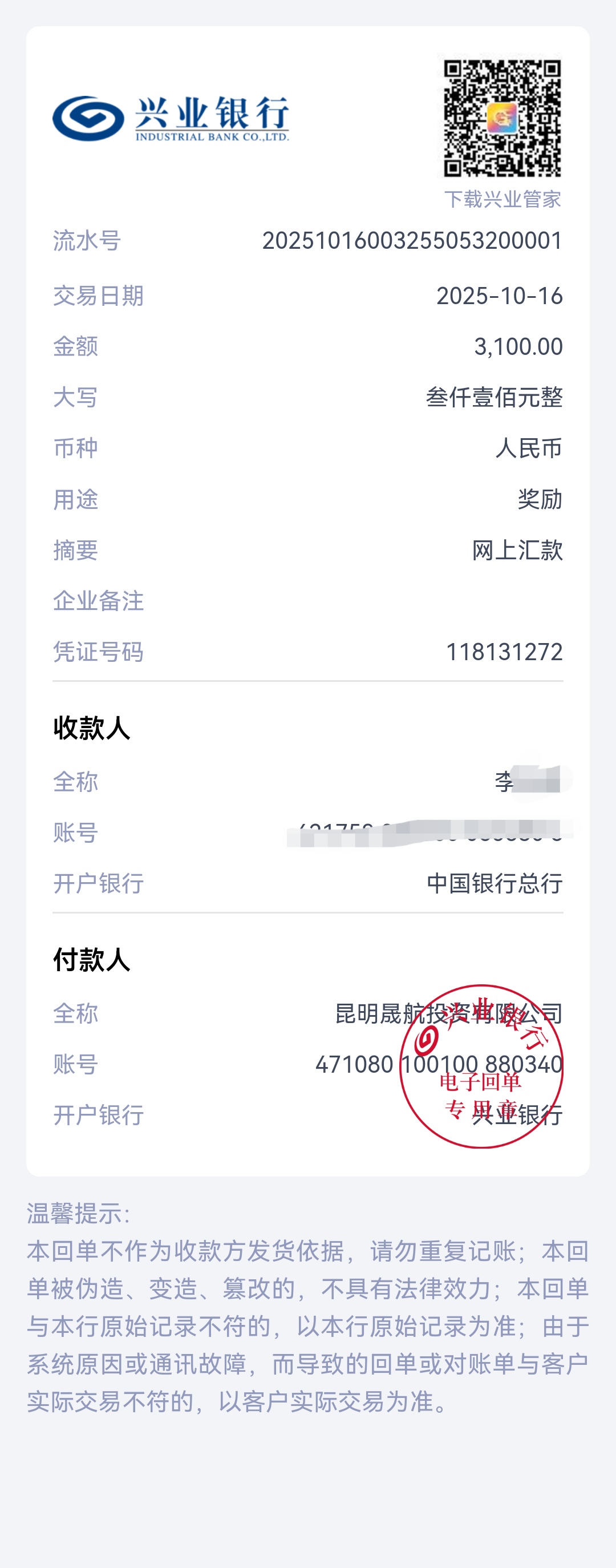 恭喜李先生VIP小账户达标15%,奖励3000元
