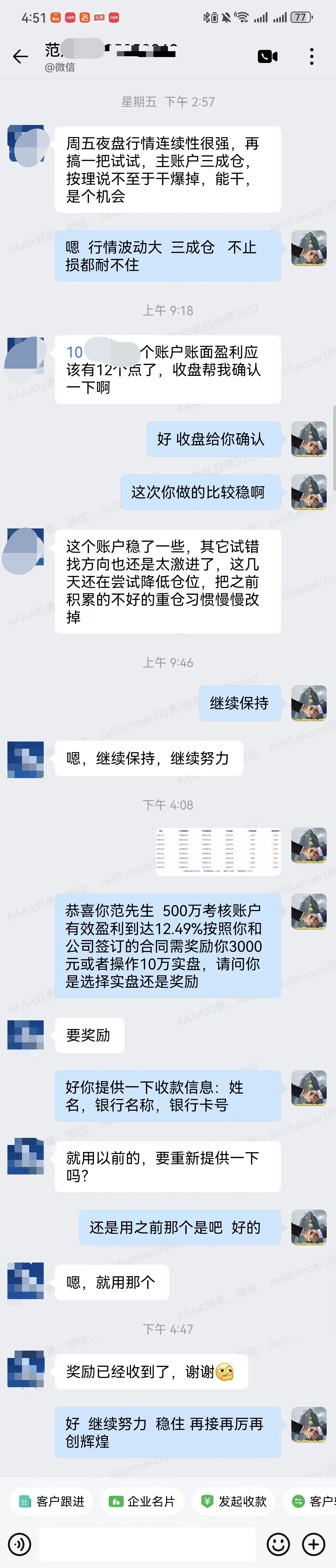 恭喜郑先生VIP大账户盈利达标9%,奖励3000