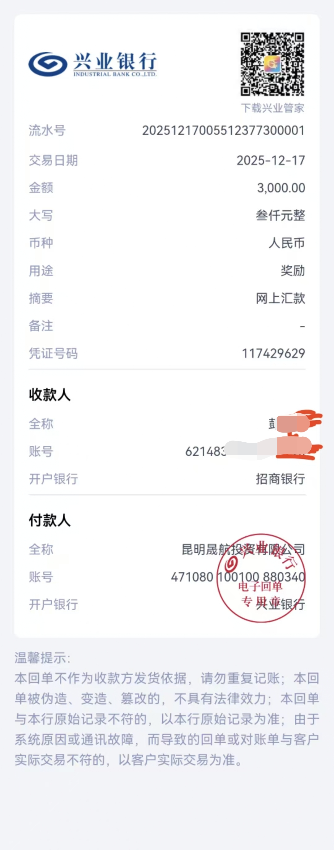 恭喜毛先生VIP中账户达标12%,奖励3000