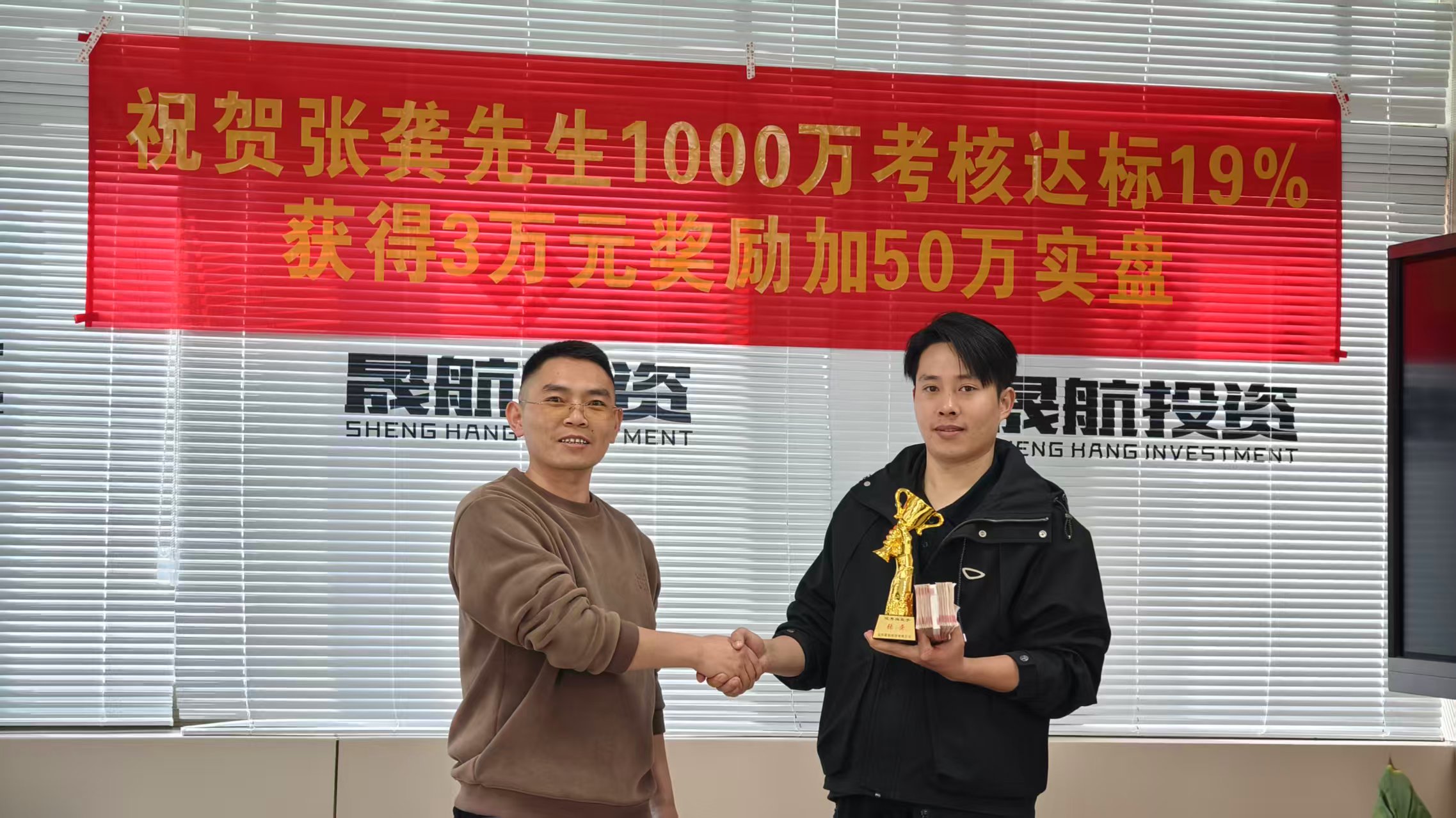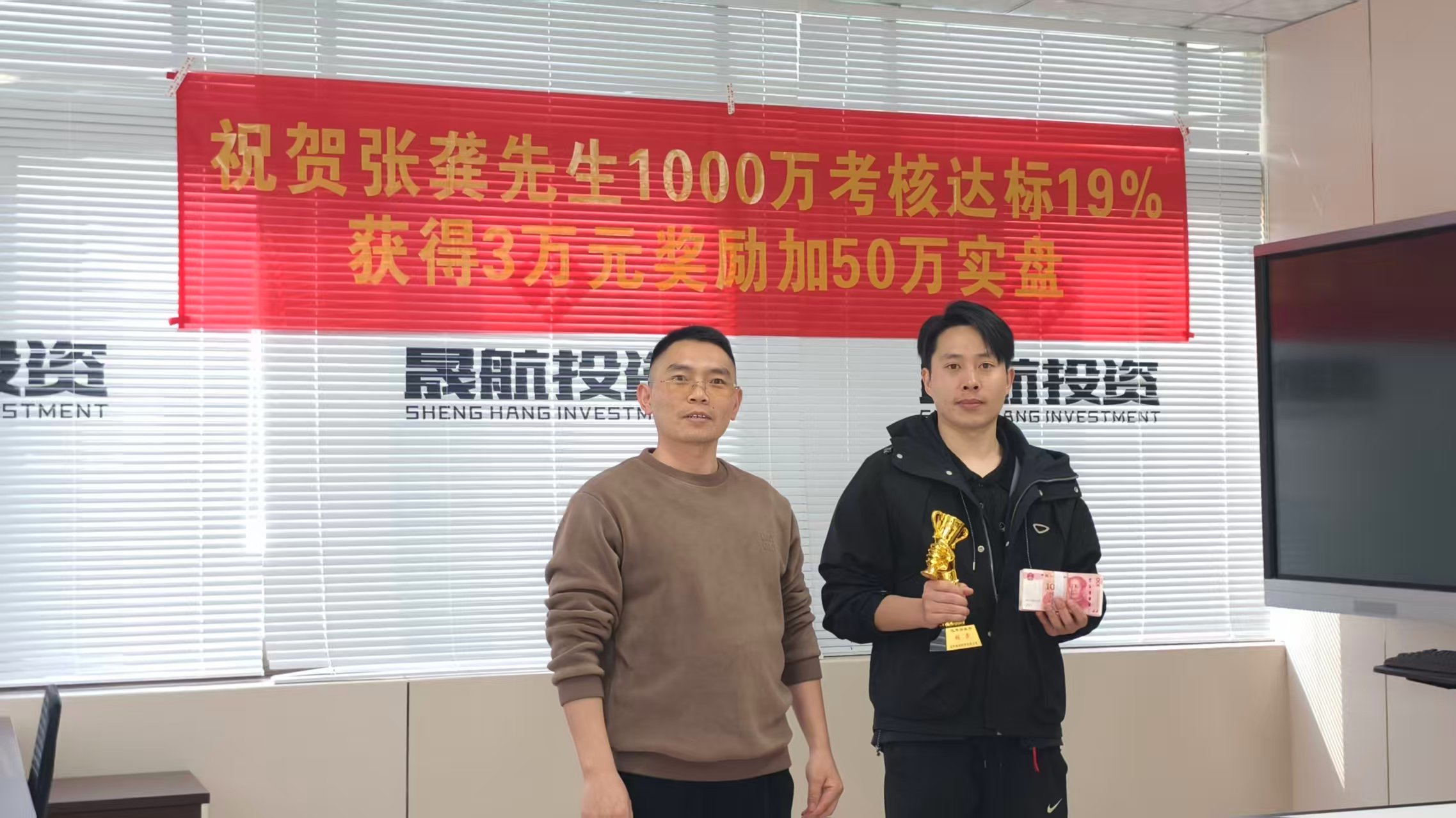 恭喜张先生1000万考核达标19%,获得3万奖励加50万实盘。