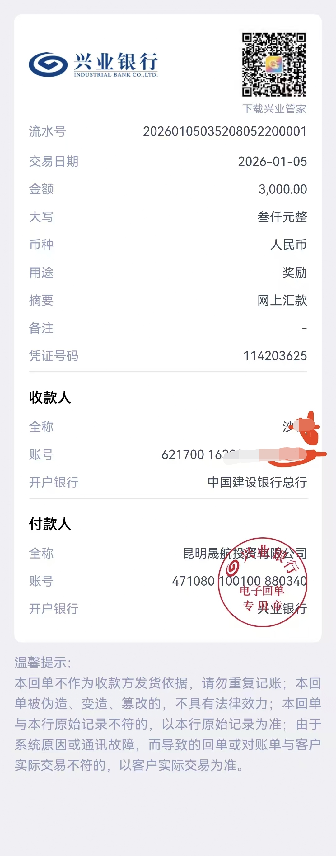 恭喜沙先生VIP小账户达标15%,奖励3000