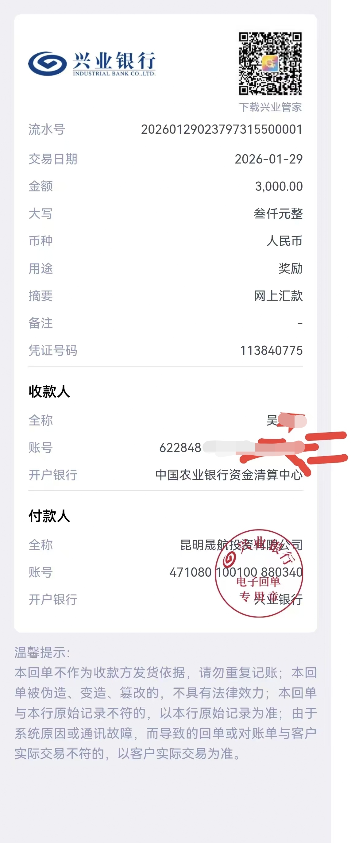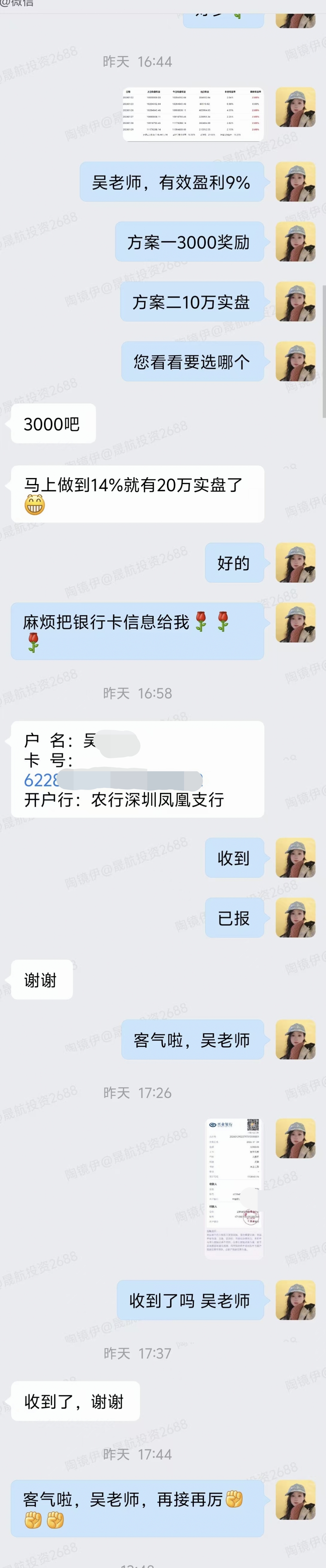 恭喜吴先生VIP大账户达标9%,奖励3000