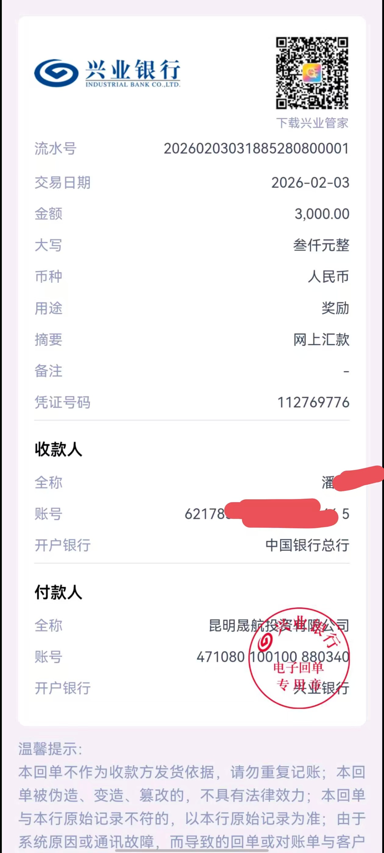 恭喜李先生VIP大账户达标9%,奖励3000