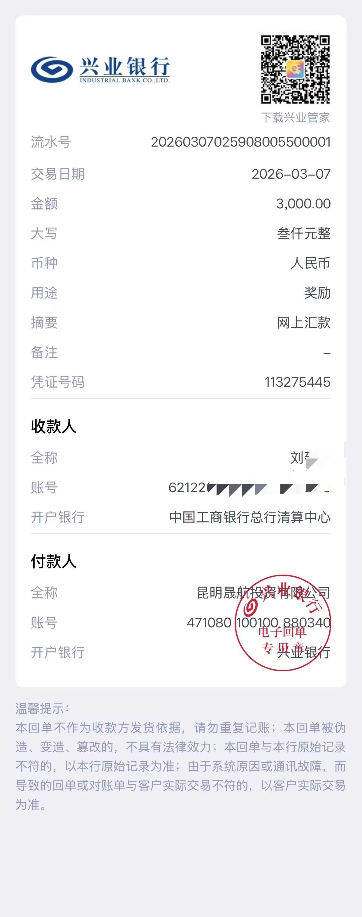 恭喜刘先生VIP小账户达标15%,奖励3000