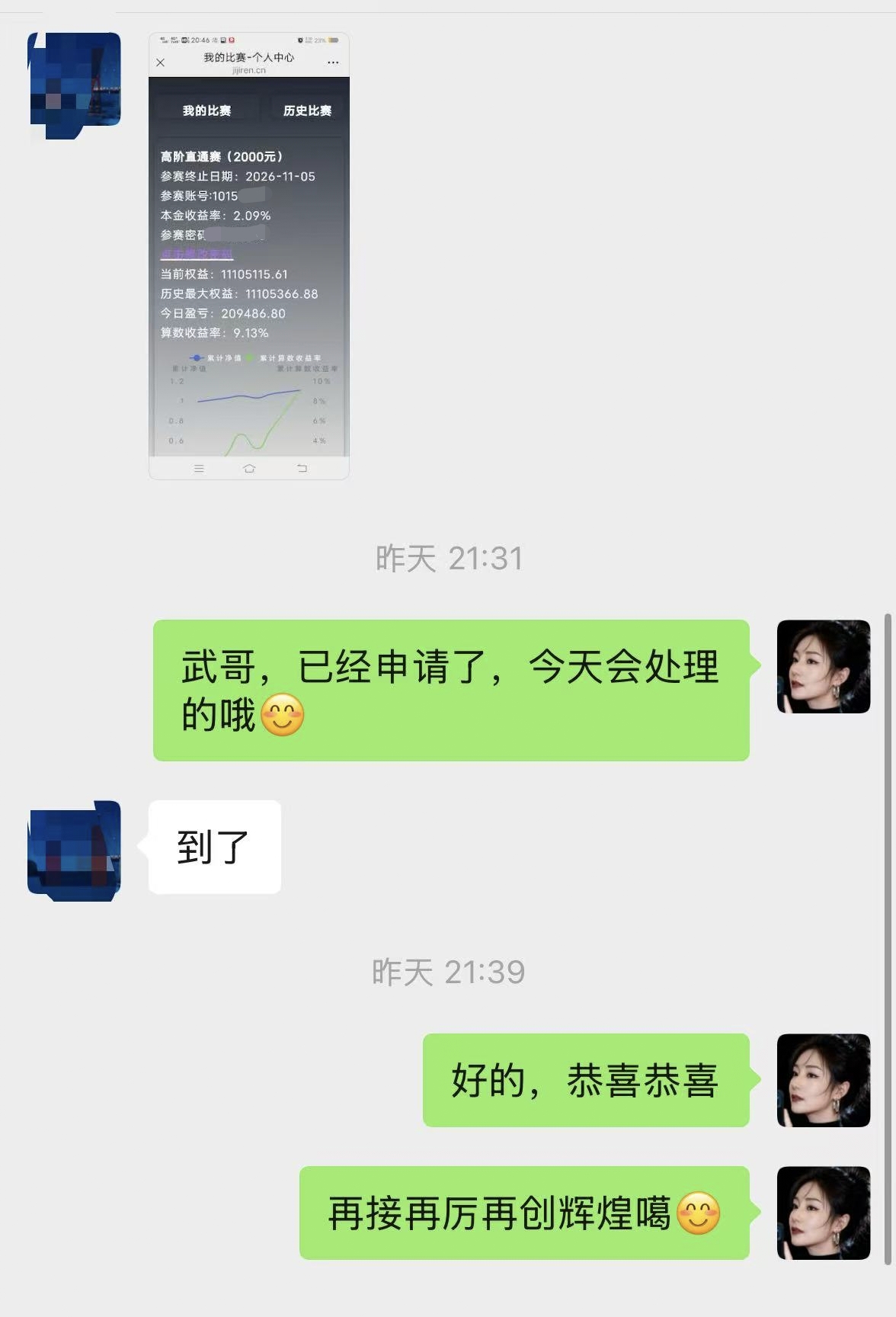 恭喜代女士VIP大账户达标9%,奖励3000