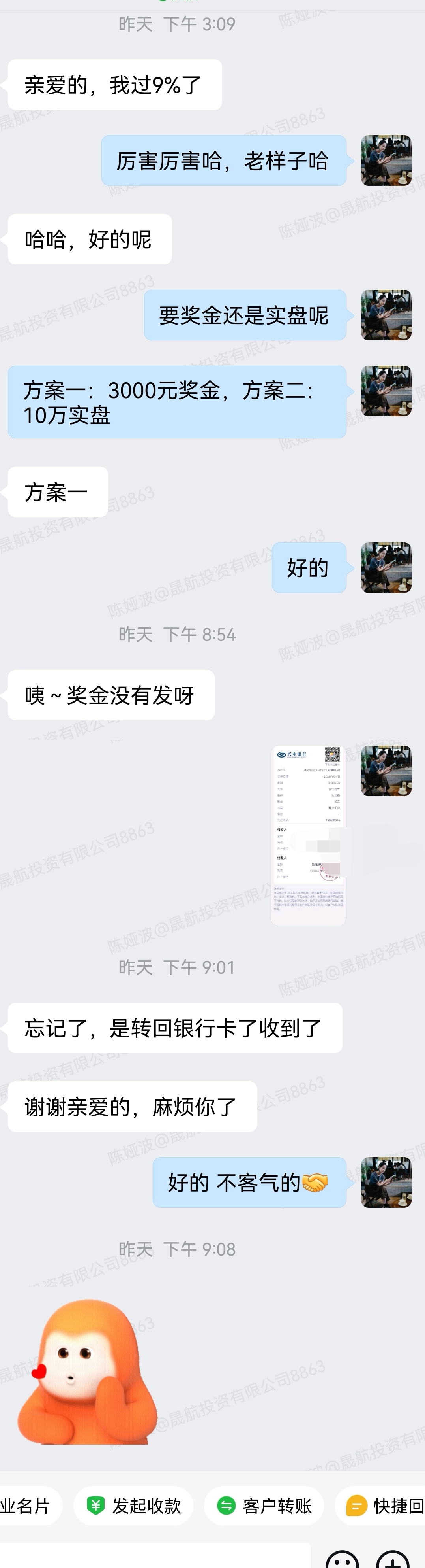 恭喜代女士VIP大账户达标9%,奖励3000.