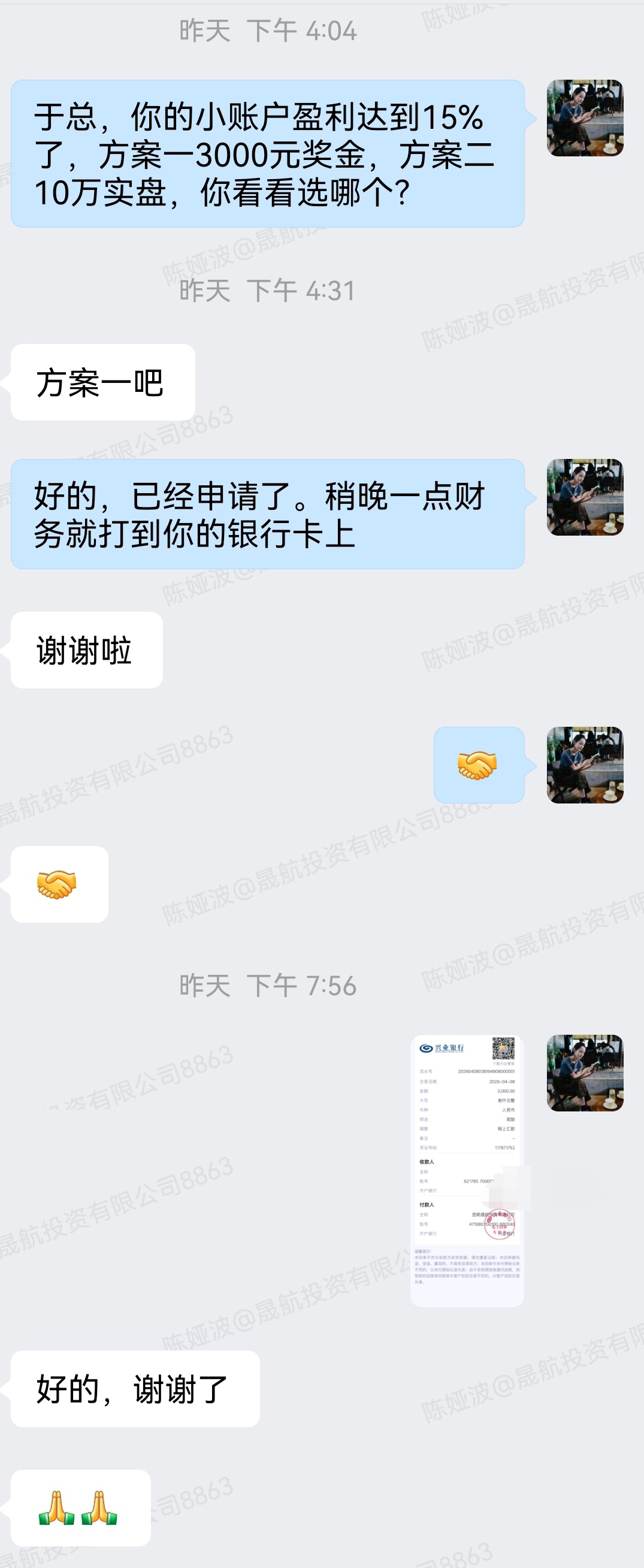 恭喜黄女士VIP大账户达标9%,奖励3000.