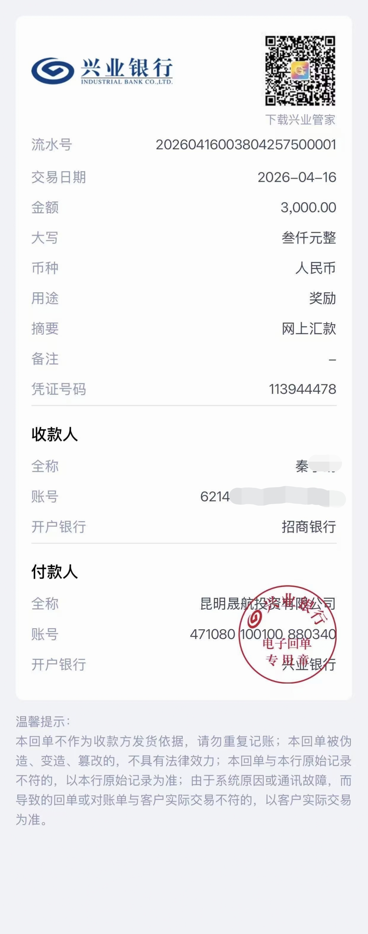 恭喜秦先生VIP小账户达标15%,奖励3000.