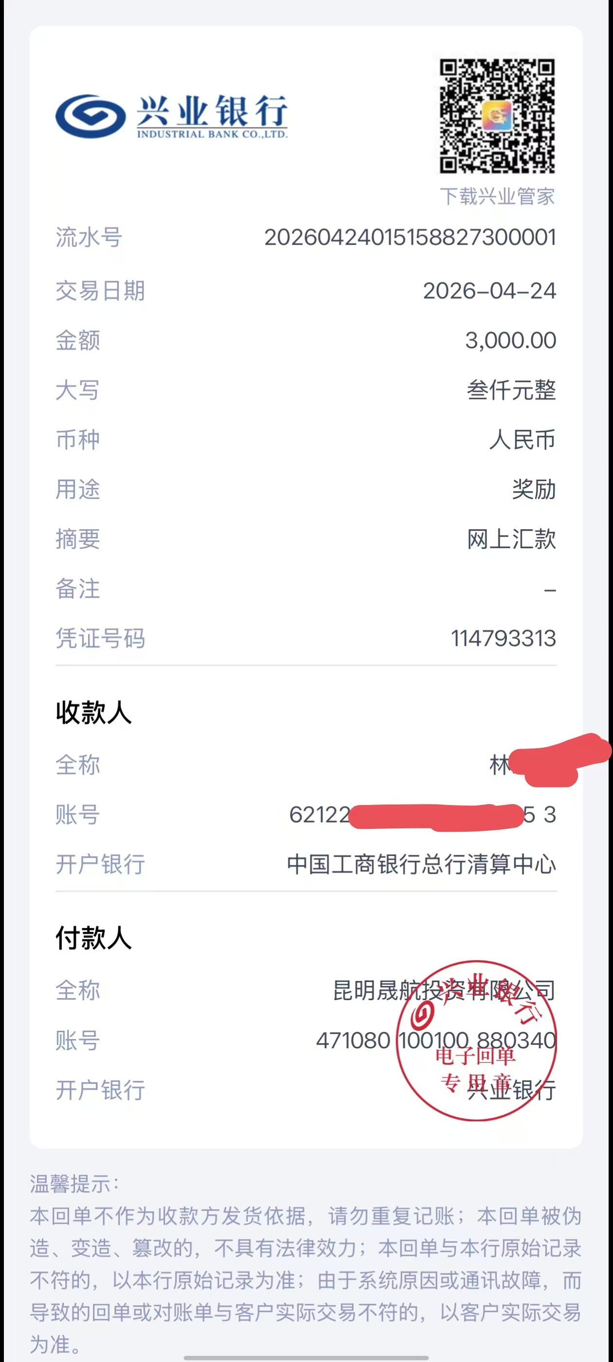恭喜林先生VIP大账户达标9%,奖励3000.